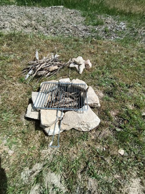 Plateau repas Barbecue Fermier : chipo, merguez, tranche de lard, crudités, pain (d'Avril à Septembre).